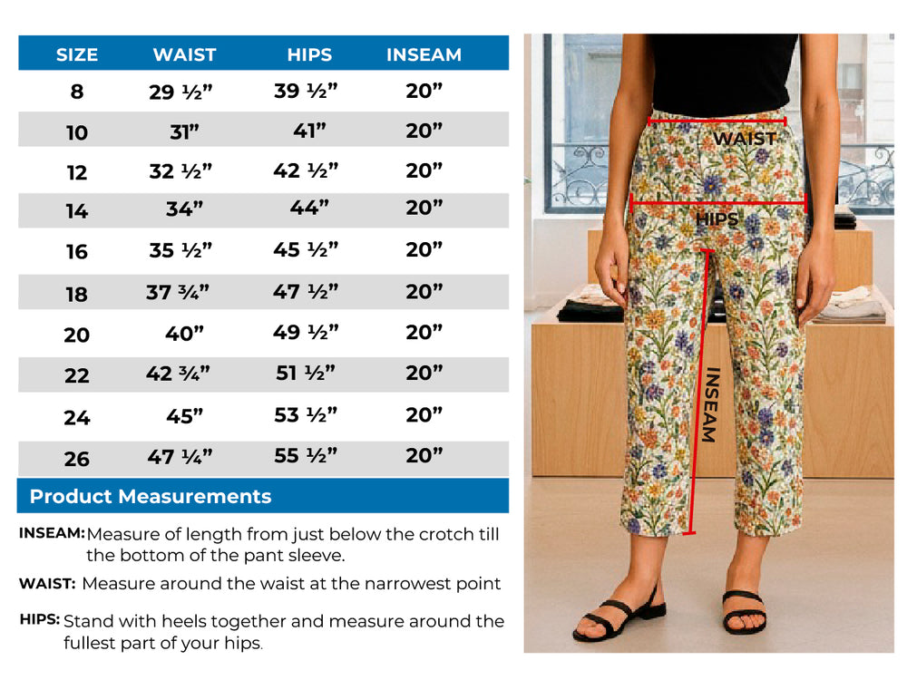 Women's Casual Botanical Bloom Capri Pants with Front Pockets and A Consealed Zipper